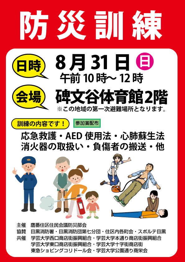 鷹番住区住民会議防災部会による【防災訓練】を行います